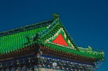 黄色,皇帝专用的颜色,使用在皇帝的行宫、住所等,如故宫。 绿色,大多用于王公大臣,宗教寺院等建筑。 蓝色,只有在祭天的地方使用,如北京天坛。 一般这些颜色的使用,都有严格的规定,并不是随便建一座房子,自己想用什么颜色就用什么颜色,用错了可见闯了大祸。这样看来,还是生活在现代好,起码可以自由地设计自己房子,按照自己想象中的样子去做。
