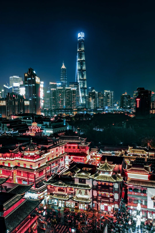 新的古今同框机位,拍摄于豫园旁边的侯家路停车场