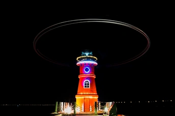 用无人机环绕照明拍的灯塔 黑夜里,仿佛头顶光环的天使降临 黑夜里,也是一种静静守护的孤独