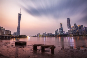 日落时分,广州华灯初上,在夕阳余晖映衬下呈现浪漫的景象。@米拍社长