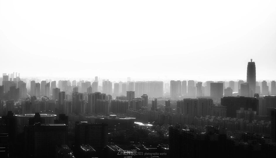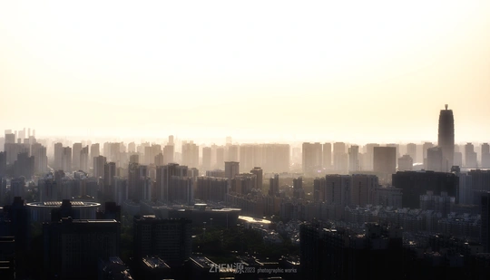 摄于黄昏时刻光线变幻最强的时候,在光的影响下城市天际线层次分明,氛围感强烈