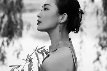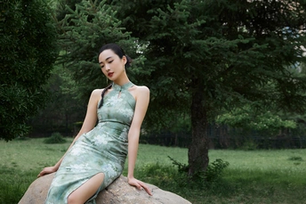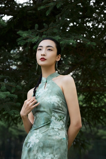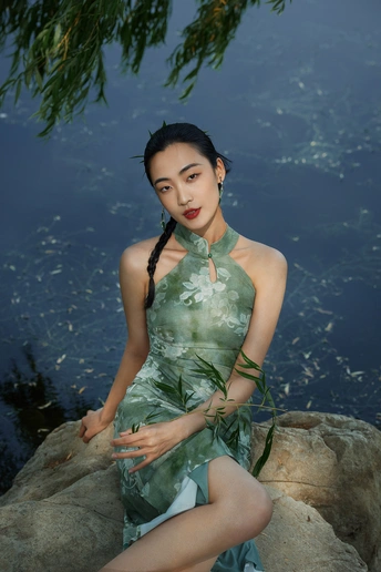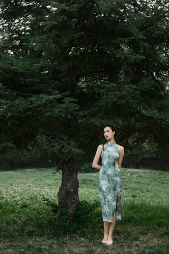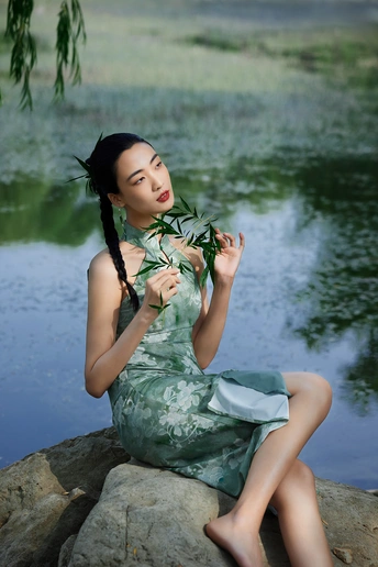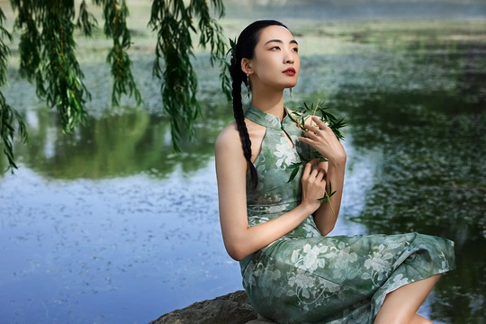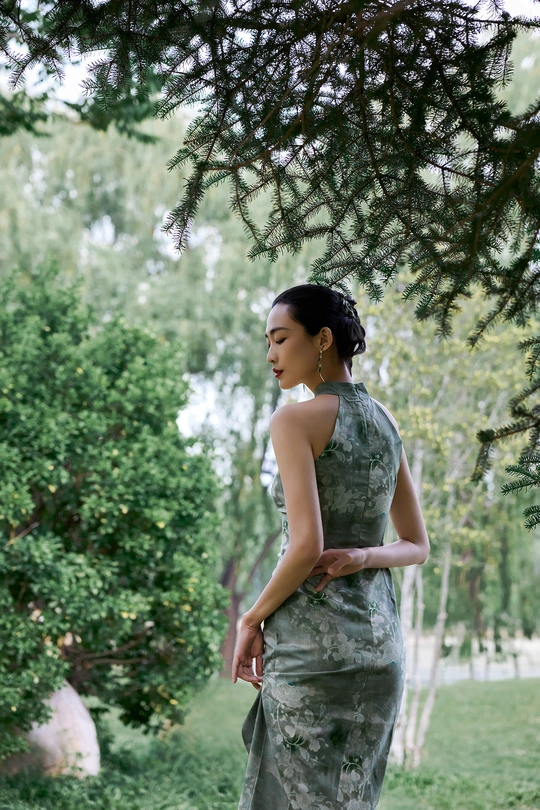 最近真的很爱新中式 垂柳、青石、松树、旗袍,加上模特的表现力,绝美~ 摄影&后期:悦然 出镜:赫岚