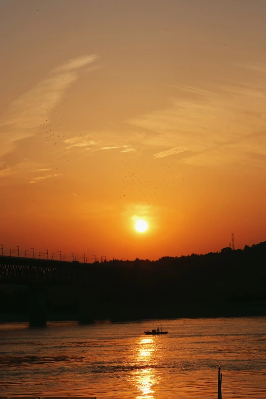 🌇✨日落那么美该用什么理由分享给你。在武汉去哪里看日落,武昌江滩便是很好的选择。坐在江滩的堤边上,欣赏逐渐落下的夕阳,当太阳落在长江大桥上,这便是武汉最浪漫的时刻。静静地看着橘红色的天空,以及日落余晖洒在滚滚的长江上,整座城市染成一片金黄,一艘艘轮船在江面上穿行,长江大桥上的火车呼啸而过,伴随着阵阵汽笛声打破这黄昏的宁静。