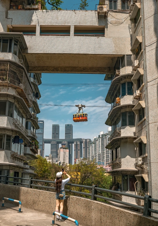 拍摄取景是在重庆白象居,白象居在重庆渝中区20多层没有电梯的老居民小区。 这是一个经典角度可以拍到长江索道和来福士同框,也是来重庆白象居必打卡的角度。 拍摄用的是微单相机使用的是广角镜头 ,原来这么拍其实你们也可以做到。