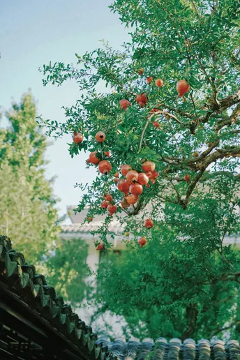 怡园的石榴熟了, 搭配中式园林建筑,非常好拍 石榴老树本身也非常有韵味