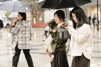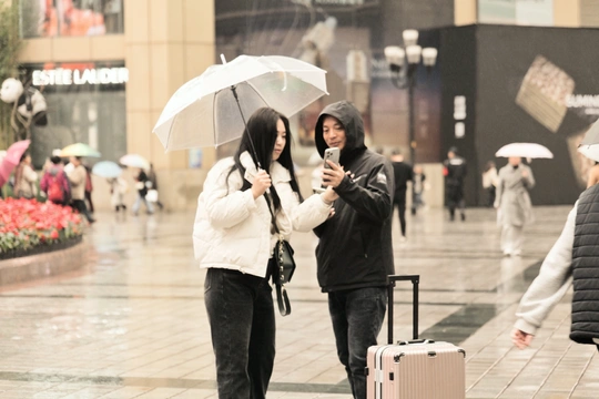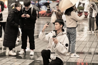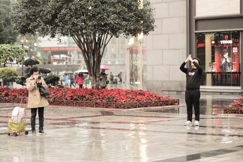 小雨淅沥沥,在重庆解放碑,游客们还是络绎不绝,翔哥用镜头记录下来不同的精彩瞬间。