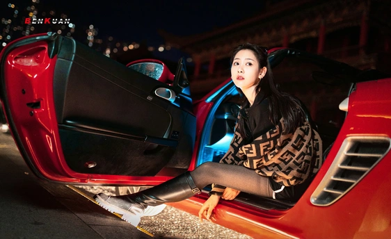 午夜的路边,红色跑车闪耀着光芒,时尚美女倚靠在车旁,她的眼神中充满了自信与魅力。这辆跑车就像是她的座右铭,见证着她的奋斗与成功。在夜色中,她是一道亮丽的风景线。