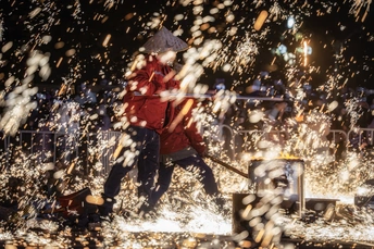 非遗表演打铁花