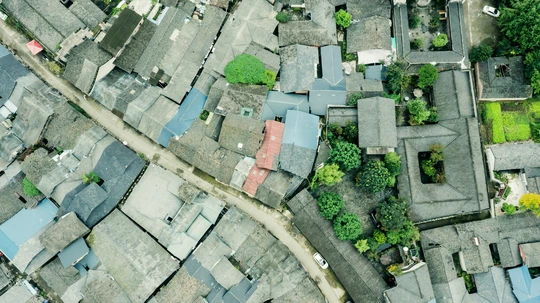航拍成都大邑悦来古镇。