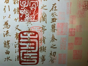 可可的兰亭寻访之旅 兰亭,三代人结缘于此。1983年暑期,大学毕业才一年的外公,和同学一起来兰亭。时逢盛世初开,百废待兴。遇兰亭书法家胡雄先生,花五元钱买了一把纸扇,背面有当地晚清末代秀才小楷抄录的《兰亭集序》。胡老师于扇面题写“黄河雅游兰亭”。十几年之后的一个暑期,携女儿重游兰亭,又遇胡老先生。报上我的俗名,老人家居然依稀记得。于是又买了一把空白纸扇,女儿恭请胡爷爷再次题字。 四十年后,携外孙女可可再访兰亭。博物馆修建得气势恢宏。遇不到胡雄老先生了。可可看展饶有兴致。看着那些千年流传的书法作品,忽地,发现了那些朱色印鉴,与一个多月前于上图东馆《大汉雄风》珍藏碑帖展上所见,有颇多相同之处。外公外婆惊讶小妞的记忆和触类旁通之悟,一时相顾无语,欣喜溢满心头……