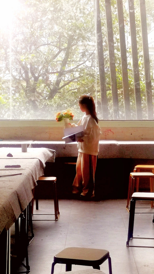 透过小窗户,看到兴趣班画室里,淡淡的阳光撒在花朵上,安静而美好 女孩被花吸引住,开心的分享喜悦!而男孩走过去,却对窗外的世界更感兴趣 其实孩子们也是含苞待放的花朵,即使各有不同,也需要我们尊重与细心呵护