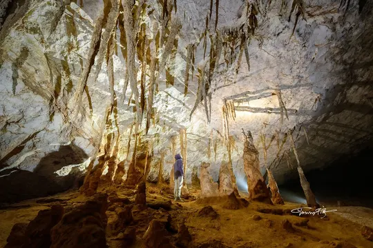 溶洞内的钟乳石,有的已经完美的实现了上下对接,有的还在继续生长。
