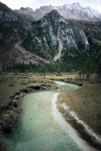 去老冷古寺的山谷里,无名小河与无名小山头的组合