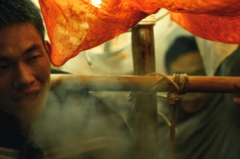 这是今年元宵节拍摄于安徽汪满田,一个不起眼的大山深处却延续着几百年留下的传承。每当我看到这张照片都很感动,一代又一代,从青年到壮年乃至老年,在每年元宵节这天都做着同样的一件事,那就去传承!这张照片创作于这样的时代背景,捕捉了一个瞬间,人物的表情和神态生动自然,展现了情感的张力。色彩方面,温暖的橙黄色调与较暗的背景形成了鲜明对比,突出了主体,营造了浓厚的氛围感。而光影处理,即光线透过布帛的效果,为画面增加了层次感和戏剧性,特别是烟雾的运用,使整个画面更富于变化和动感。构图紧凑,利用画面前景的竹子和布帛,有效地框住了主体,使观者的视线集中在人物上。