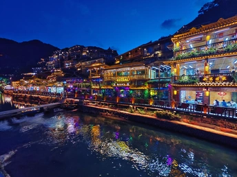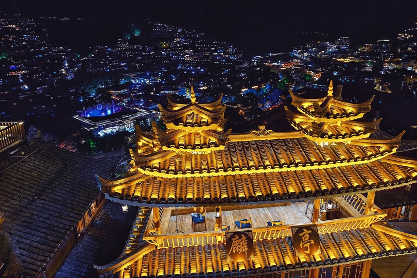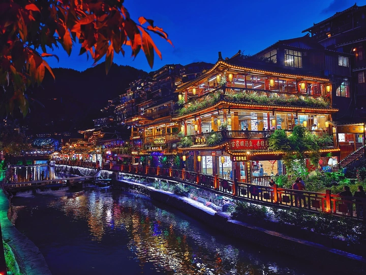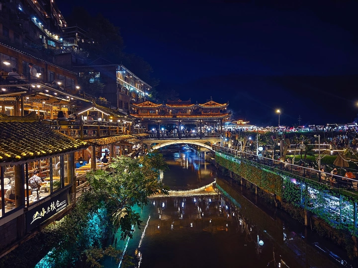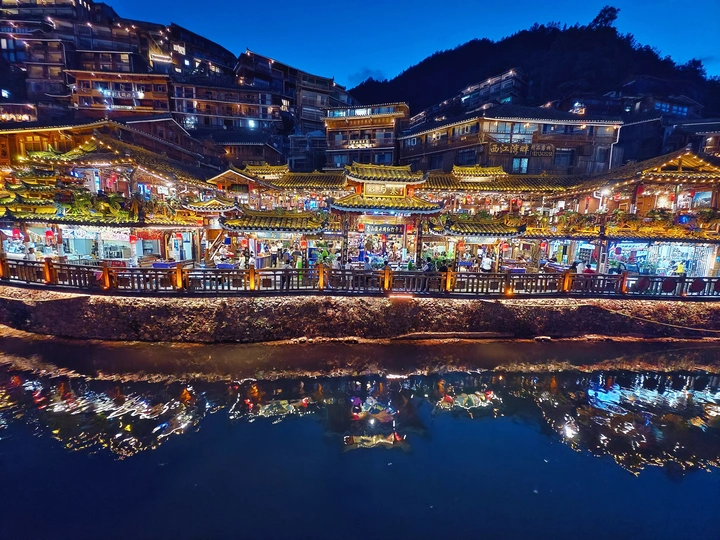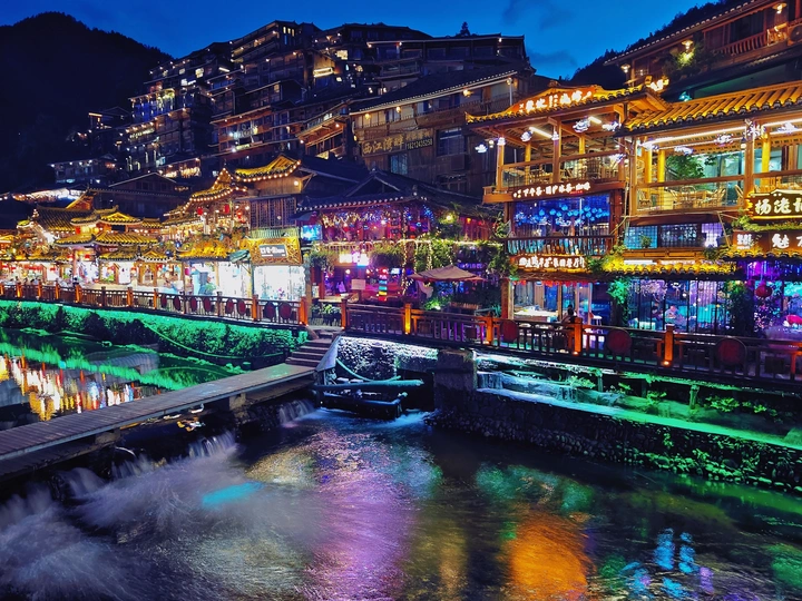 西江千户苗寨,标准人造网红景观。店铺不是吃,就是拍照,多如牛毛。夜景确实都好看,但体验感一般。