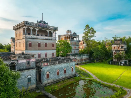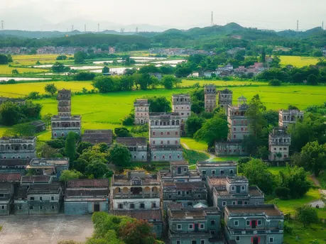 这幅作品捕捉了开平碉楼的独特风貌,展现了它们在岁月长河中静静伫立的姿态。碉楼的砖墙在阳光下泛着古老的光辉,仿佛在诉说着历史的厚重与沧桑。作品通过巧妙的构图,突出了碉楼的高度与坚固,象征着过去对家园的守护与对未来的期许。 画面中柔和的光影不仅增强了建筑的立体感,更赋予了它们一种静谧而神秘的氛围。远处的蓝天与白云为背景,为古老的碉楼增添了一抹清新的现代感,象征着历史与当下的交汇。通过这幅作品,我希望观者能够感受到开平碉楼作为时代见证者的非凡魅力,同时也能激发对传统文化的深刻思考与珍视。