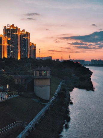 这张照片整体表现出较高的摄影水平,值得肯定。这张图片以黄昏时分的景色为主题,展现了城市建筑与自然水域的和谐美感。在色彩方面,夕阳的温暖色调与城市灯光的冷色调形成了对比,产生了极具视觉吸引力的效果,能够有效激发观者的情感共鸣。光影的运用上,建筑物的灯光勾勒出细腻的轮廓,河面的反射增添了画面的层次感,营造出一种宁静而美丽的氛围。 在构图方面,画面左侧的河流与右侧的建筑相互呼应,展现了城市与自然的联系。同时,斜线的引导使得观者的目光从前景流畅地引向远方,增加了画面的深度感。然而,前景部分的元素有些杂乱,建议进行简化,以增强主体的突出性。 后期处理方面,图像的色彩饱和度适中,光影表现自然,整体风格符合拍摄主题。但可以考虑在对比度和亮度上进行进一步的调整,以提升画面的视觉冲击力和细节展示。 关于主题重要性和原创度,城市与自然的结合是一个普遍而又重要的主题,但在当今摄影作品中,如何将这一主题呈现出独特的视角和思考仍然是一个挑战。可以尝试在拍摄角度上进行创新,寻找不同的视角或意象,以增强作品的原创度和深度。 综上所述,这张照片在多个方面表现出色,但仍有进一步提升的空间。
