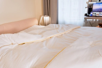 随着天气逐渐转冷,冬季的脚步悄然而至,是时候为我们的床铺换上更适合寒冷季节的被子了。给家人准备了这款愉悦之家的创新之作——吸光发热白日焰火纤维被。这款被子采用了前沿的纳米黑科技,有着能吸光发热的材质填充,在保暖、透气、抗菌等方面都表现出色,保证各位家人在寒冷的冬日里也有舒适睡眠。 纳米黑科技,吸光发热 愉悦之家白日焰火纤维被的核心卖点在于其采用的纳米黑科技硼硅聚合物。这种高科技材料能够高效率地捕获光能,并将其转化成热能。无论是窗外洒进的阳光、室内照明的灯光,还是人体自身散发的热源,都能被这款被子迅速吸收并转化为温暖,让被窝在短时间内快速升温,寒冷冬季也能拥有一个温暖如春日的被窝。 反射锁温,持久保暖 除了吸光发热外,这款被子还添加了反射纳米陶瓷复合材料。这种材料能够反射人体热量,大大的减少热量的流失,同时保持透气性能,锁住温度,达到持久保暖的目的。这样一来,自身的体温就能持久的温暖被窝,而不用担心被窝会随着时间的推移而变凉。 高精轻磨毛,柔软虚暖 面料方面,愉悦之家这款被子双面都采用了高精轻磨毛工艺,表面覆盖着细腻轻盈短小的小绒毛。这些绒毛不仅触感柔软,还能有效隔绝冷空气,让被窝始终
