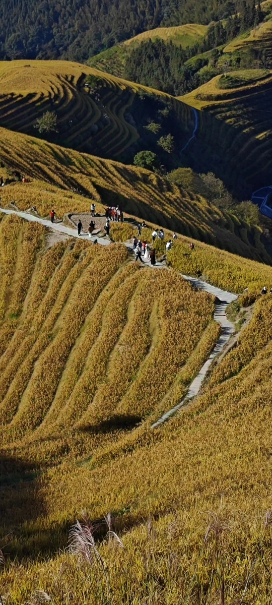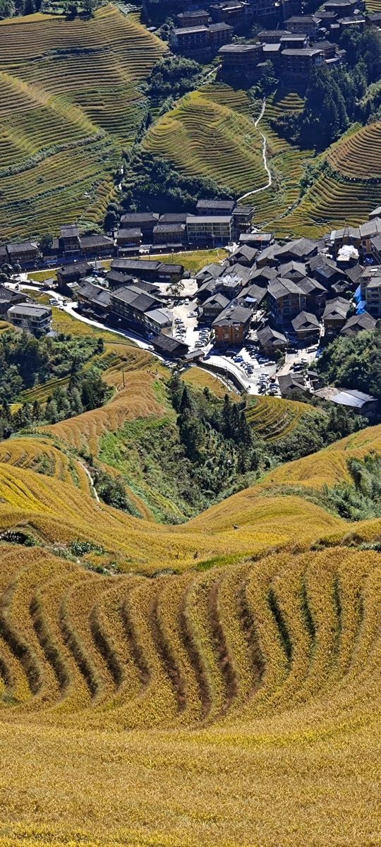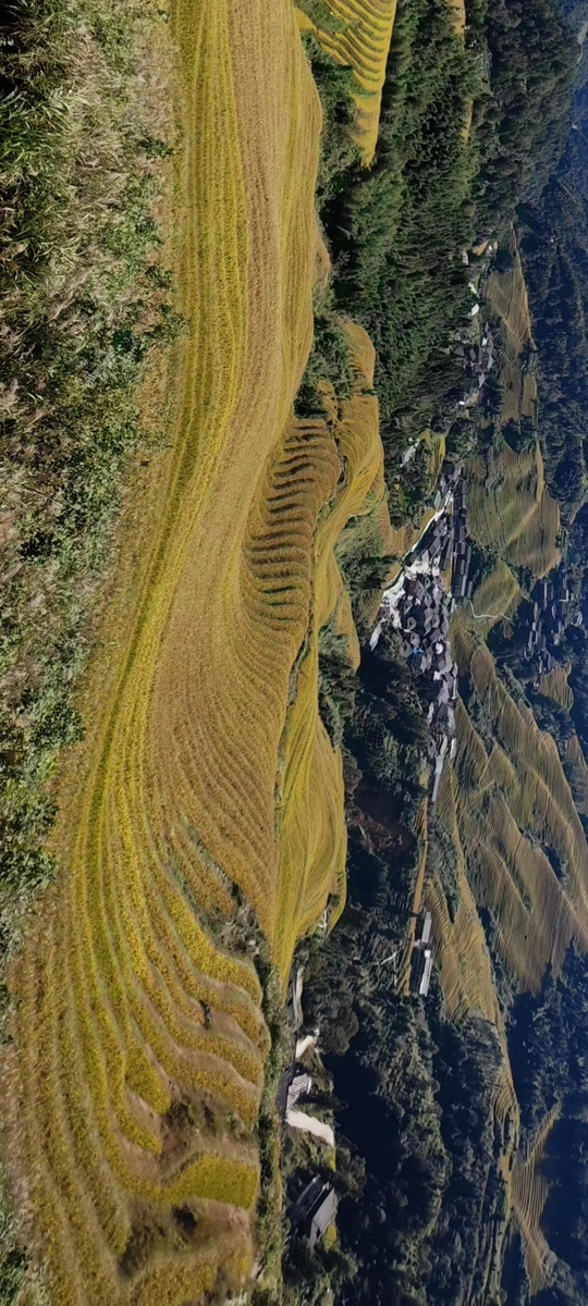 龙胜龙脊的稻田熟了,那是一片耀眼的金黄,如同大自然挥洒的金色颜料,肆意地在大地上铺展。黄灿灿的一大片,在阳光的照耀下,闪烁着迷人的光芒。微风拂过,稻穗轻轻摇曳,仿佛是大地在向人们诉说着丰收的喜悦。漫步其间,稻香扑鼻而来,让人心旷神怡。这金色的稻田,不仅是农民辛勤劳作的成果,更是大自然赋予我们的美丽馈赠,吸引着人们前来观赏,感受这份独特的秋日美好。