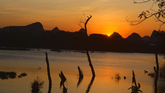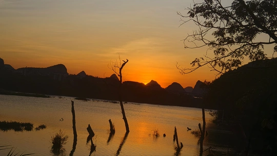 这张照片展示了一个美丽的日落场景,色彩运用上,暖色调的运用给人以温馨的感觉,黄橙交融的色彩有效营造了宁静的氛围。然而,天空与水面的色彩关系稍显单调,增加一些冷色调或渐变效果或许能使画面更具层次感。 在光影方面,光线的方向和强度营造了日落的壮丽效果,水面的倒影增强了照片的立体感,然而主体的树干和轮廓可以用更强的侧光突出,从而避免与背景的融为一体。 关于构图,采用了较为合理的布局,但主体的树干位置略显散乱,使用三分法可以让主要元素更为突出,将树干放置在画面的某一交点,能增强视觉引导性。 后期处理方面,整体色调和对比度表现良好,但水面亮度可稍加减弱,以突出日落的细节,增加沉浸感,避免高光部分过曝。 在主题原创性上,尽管日落题材较为常见,但通过独特的拍摄角度和前景元素的运用,展现了一种新的视角,抓住了日落时分的瞬间。 情感共鸣方面,日落的画面传达了一种平静与思考,似乎在讲述时间流逝的故事,激发了观者的共情。 最后在思想深度上,照片引发了对自然与生命流转的思考,具备一定的哲理性,虽然尚不够深刻,但足以引导观者留意自然的瞬息变化。 综合来看,这幅作品在技术和艺术表达上都展现了一定水平