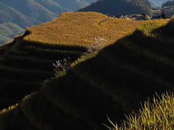 我这个月的26日去龙胜龙脊梯田赶了个尾圩,从27日开始收割当中,一年一度的稻田最美时光最美风光给我赶上了,心中有龙脊,龙脊就会展示最阳光最美最好的一面给我们观赏。