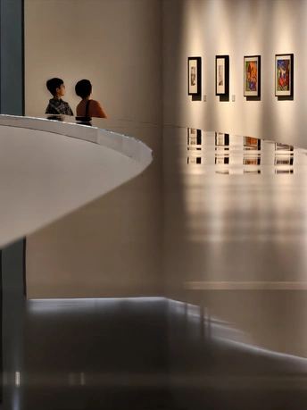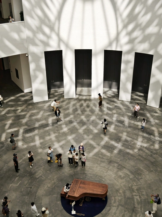 艺术博物院内的建筑空间及线条、大厅中央的钢琴演奏、艺术品的陈列展览,吸引了许多人参观打卡。