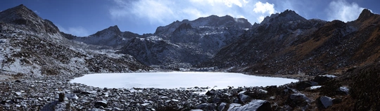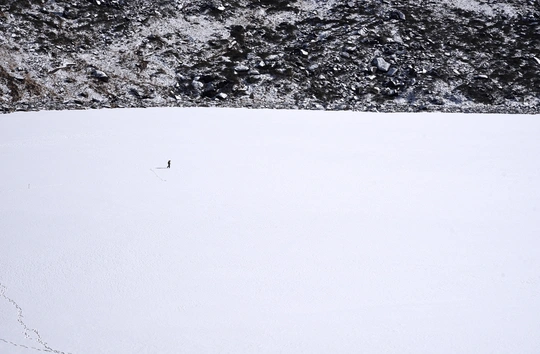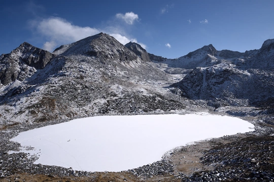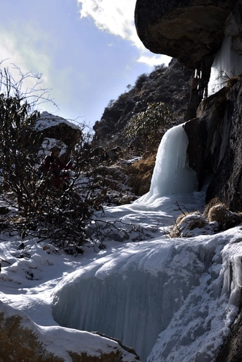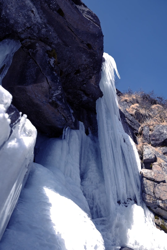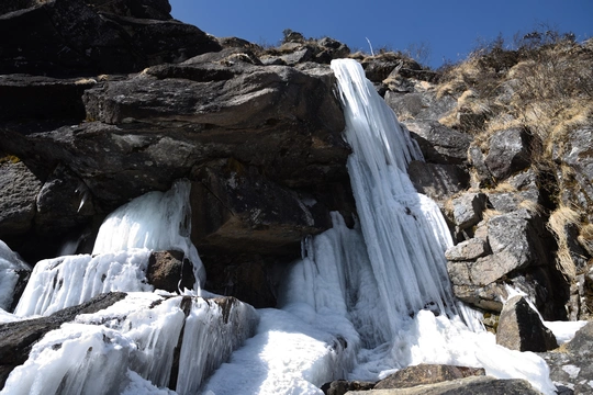 甲尔猛措的冰瀑和冰冻的海子(湖泊)