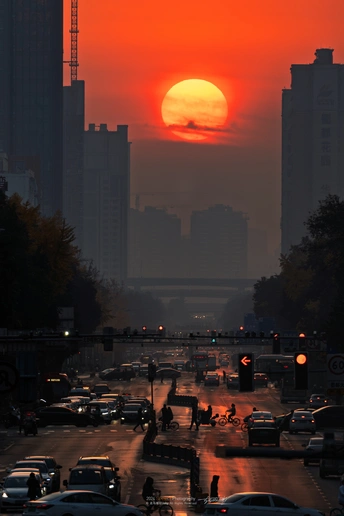 冬天可以在春熙路旁边的王府井百货天桥拍到成都版曼哈顿悬日。 📷:索尼a7r2+腾龙50-400mm