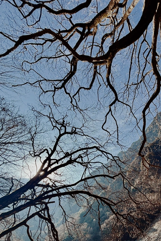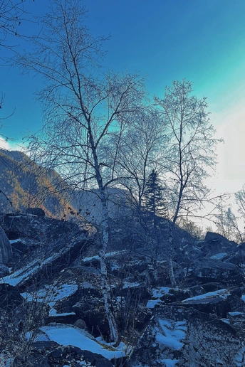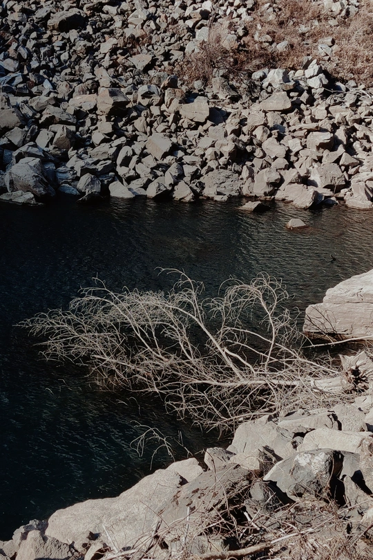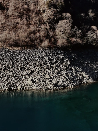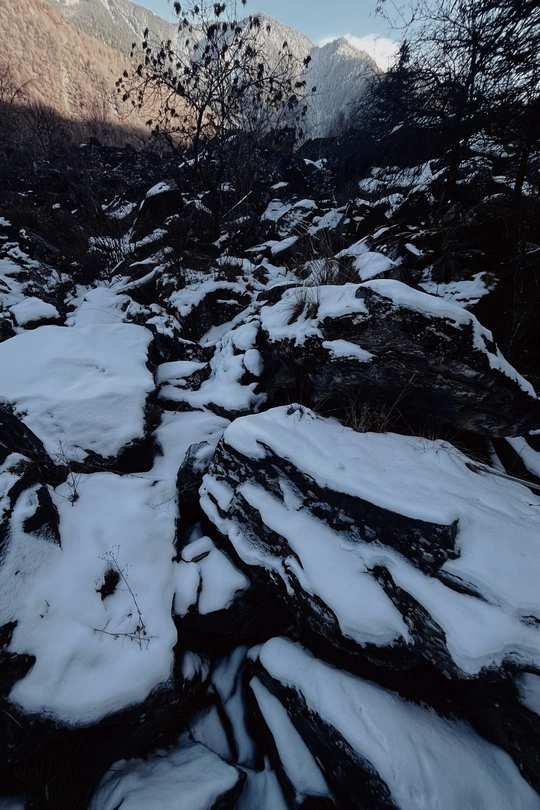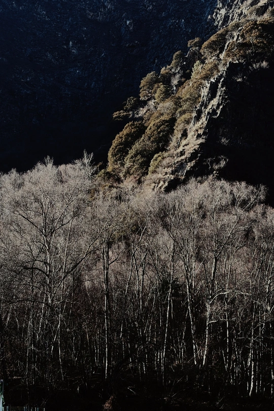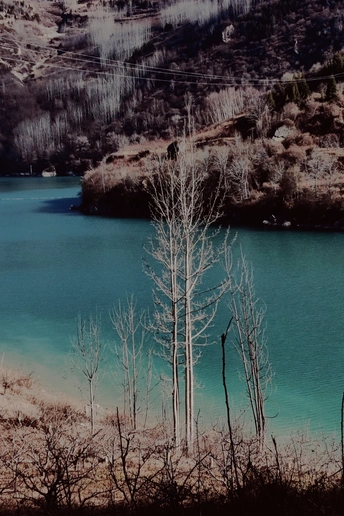 这里是目前世界上保存最完整的地震破坏遗址之一,也是国内著名的红叶观赏圣地,冬季的叠溪.松坪沟是一年中的旅游淡季,植被陷入沉睡,覆盖着冰层的湖水也失去了生机,一路上,随处可见大大小小的石块,小的像被刻意粉碎,整齐排布,大的像锋利的匕首,直刺云霄,树木冲破岩石、屹立山间,等待着来年春天的到来,在这儿,我看到了生命蕴藏之美。