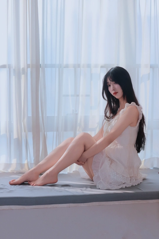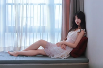 人像约拍之阳台边的温柔时光;阳台边缘,定格温柔时光,长发飘逸的少女与浅色吊带裙的浪漫邂逅,,,