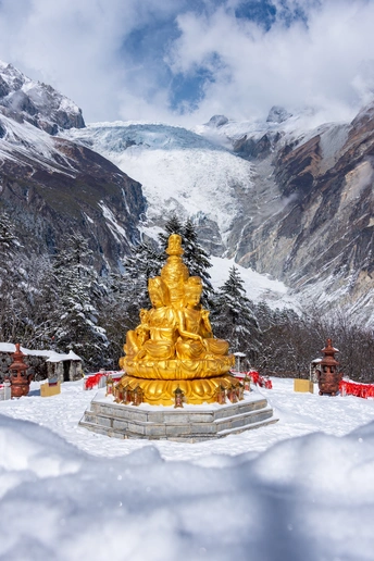 拍摄于四川海螺沟,前景的佛像与背景的冰川相呼应,代表永恒与信仰。