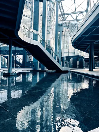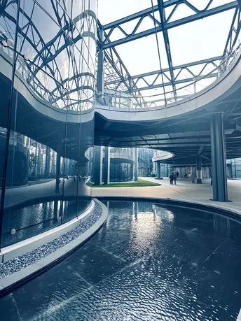 由奥地利DMAA事务所设计,华建集团上海院协同完成。整体立面采用透光率89%的超白半钢化夹胶玻璃,屋顶面积达1万平方米,采用“不规则多边形”网格划分,扩大采光面积。