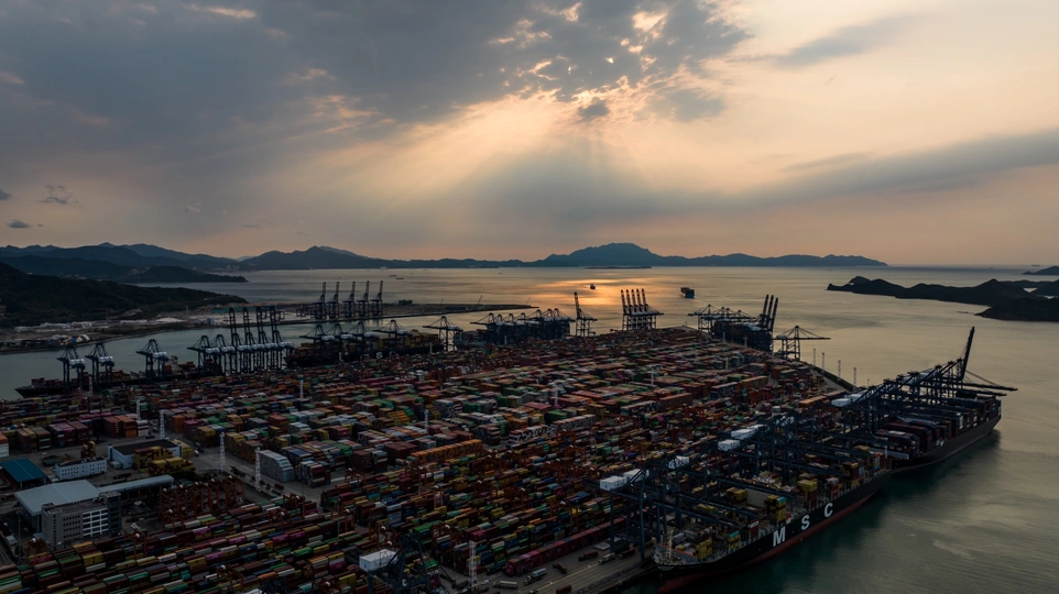 色彩与线条的光影篇章 当朝阳的余晖倾洒在这片繁忙的港口,一幅绝美的摄影画面就此展开。从摄影专业角度来看,这是一次光与影、线条与色彩的完美碰撞。 光线在这张照片中起着决定性作用。此时正值黄金拍摄时段——日出时分,柔和且富有方向性的光线勾勒出港口的轮廓。逆光下,起重机的轮廓被清晰勾勒,形成极具艺术感的剪影效果,硬朗的线条与天空的柔和光线形成对比,强化了画面的立体感。而洒在海面上的光线,如碎金般闪烁,为画面增添了灵动之感。 构图方面,摄影师采用了俯瞰视角,将港口的宏大场景尽收眼底。集装箱整齐排列形成的几何图案,以及船只、起重机的布局,构建出严谨的画面秩序。画面中,港口的各个元素分布合理,形成了良好的视觉引导线,从前景的集装箱逐渐延伸到远处的海面和山峦,让观者的目光在画面中自然流动。 背景中的天空与海面,为整个画面营造出深远的意境。厚重的云层被朝阳染成暖色调,部分云层的阴影又带来明暗对比,丰富了画面的影调层次。远处的山峦在光影中若隐若现,增加了画面的空间感,使得这张关于港口的摄影作品,不仅仅是对现实场景的记录,更是一件融合了光影艺术与构图美学的佳作。