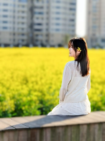 哈喽!咱们来看看这张照片。整体感觉很清新,小姐姐和油菜花田的搭配很春天!但就像一杯略淡的柠檬水,可以再加点料。 * **色彩:** 色彩上,明快的黄色和干净的白色形成了对比,营造了清新感。但黄色略微有些过曝,饱和度可以适当降低一些,避免过于刺眼。小姐姐头上的小黄花很点睛! * **光影:** 光线是自然光,整体比较柔和,但缺乏层次感。可以尝试在日出日落时分拍摄,利用侧逆光勾勒轮廓,增加立体感。现在的光线有点平,让小姐姐看起来像贴在背景上,缺乏空间感。 * **构图:** 构图上,小姐姐坐在画面下方,留白较多,视线容易被分散。可以尝试稍微拉近镜头,或者让小姐姐稍微靠右侧,遵循三分法原则,会更有吸引力。背景的建筑略显突兀,可以考虑用更大的光圈虚化背景,或者变换角度,避免建筑入镜过多。 * **后期处理:** 后期处理可以适当提亮暗部,增加对比度,让画面更通透。但要注意不要过度修饰,保持自然感。如果觉得黄色饱和度过高,可以在后期适当降低。 * **主题原创性:** 主题是常见的花田人像,比较大众化。可以在pose或者场景选择上做一些创新。