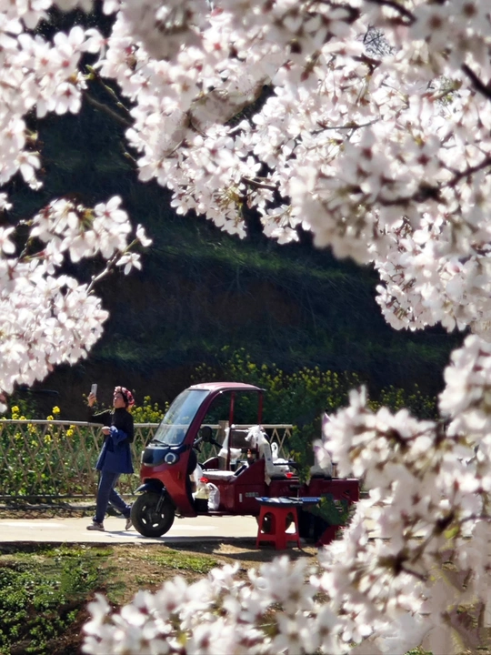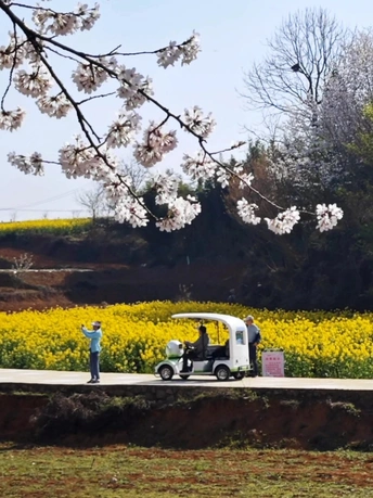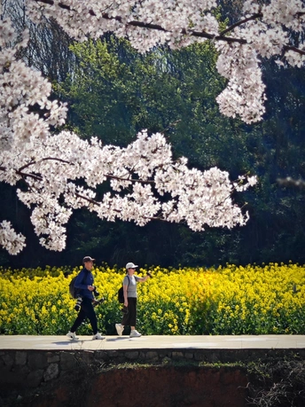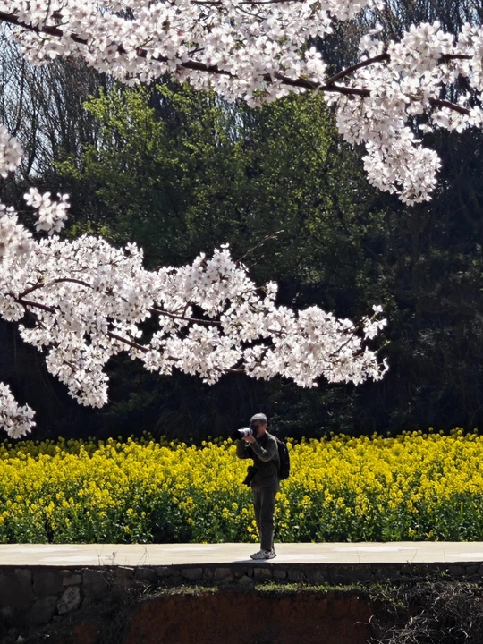 当下,贵州平坝的万亩樱花园正值樱花盛放。踏入其中,樱花与光影相互碰撞,金黄的油菜花穿插其间,绘就了一幅如梦似幻的绝美画卷。我彻底沉醉了,满心满眼都是这醉人的景致,被深深吸引,舍不得移开目光。