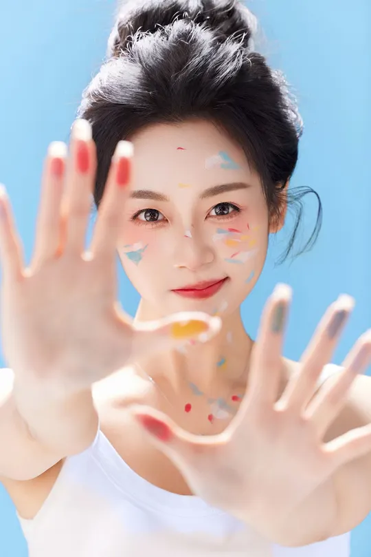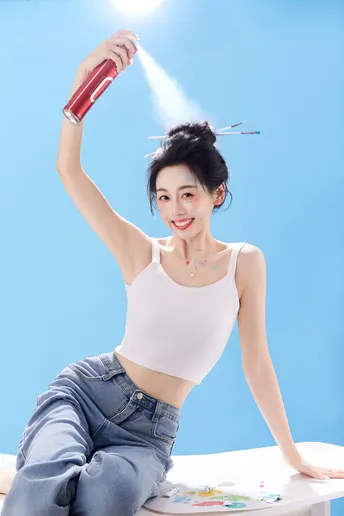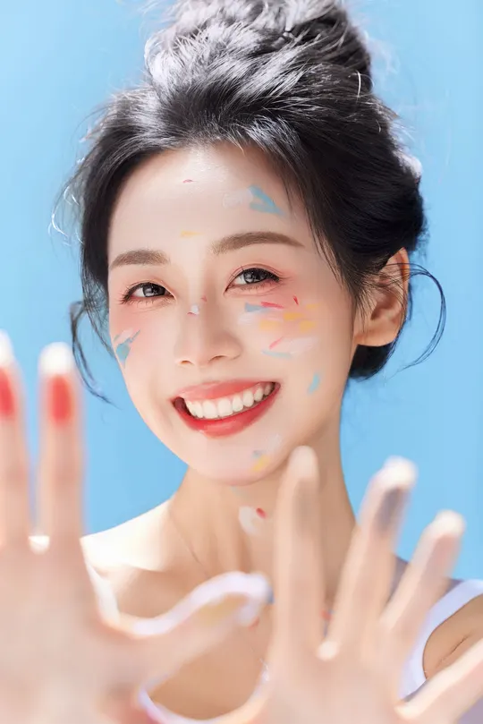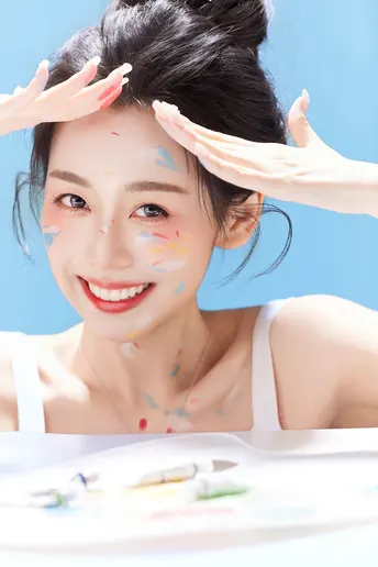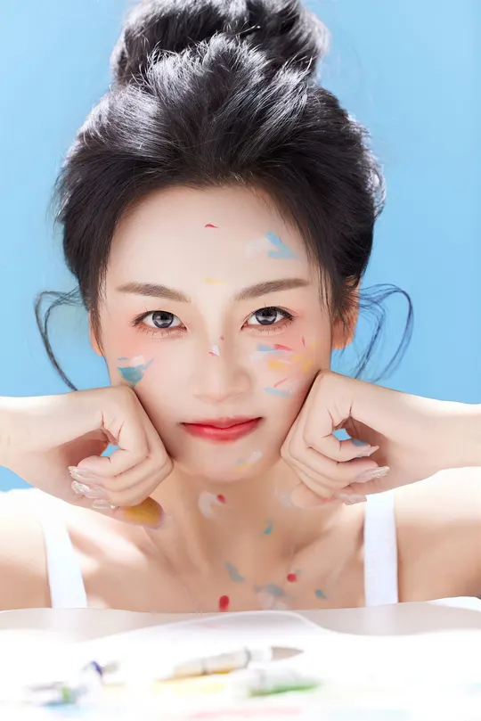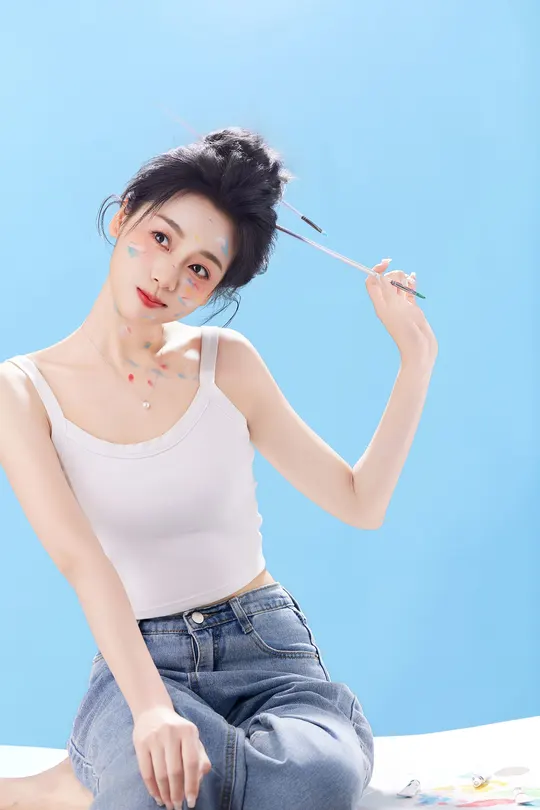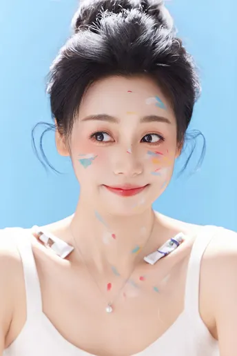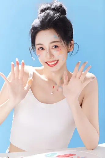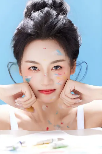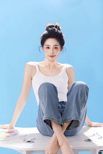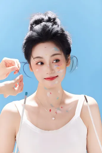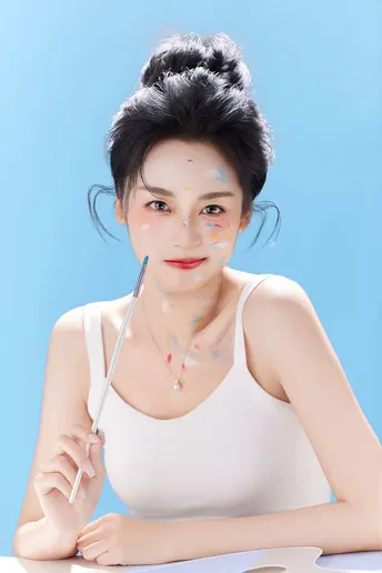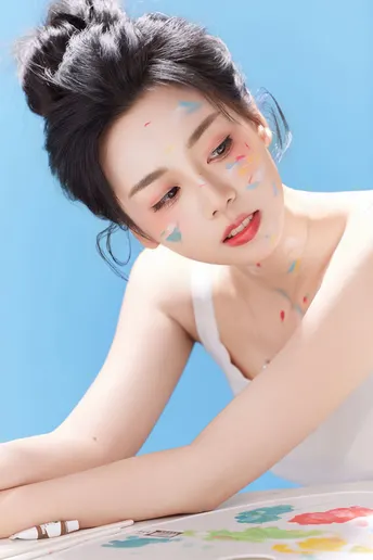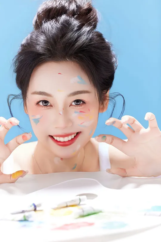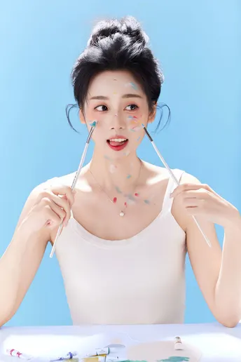 🎨 色彩魔法: 以克莱因蓝为底色幕布,用马蒂斯式的拼贴手法在人物身上点染镉红/翡翠绿/柠檬黄。颜料不规则滴落的肌理模仿樱花纷飞轨迹,实现人工造物与自然韵律的奇妙共振。