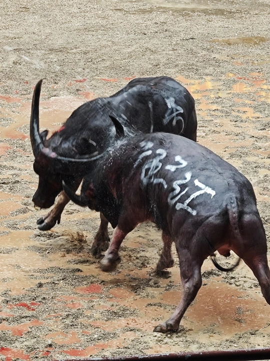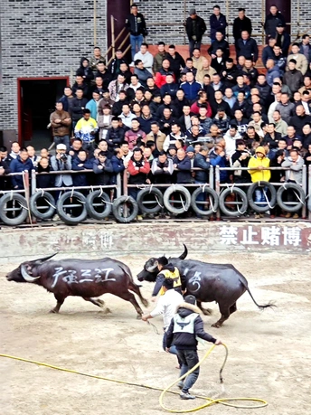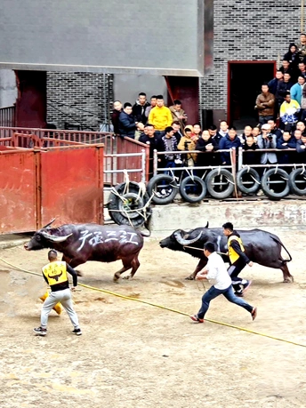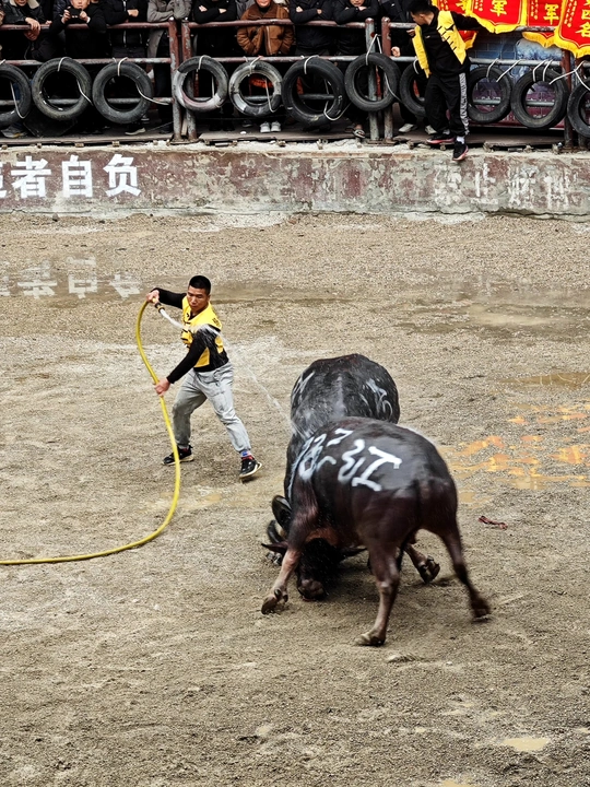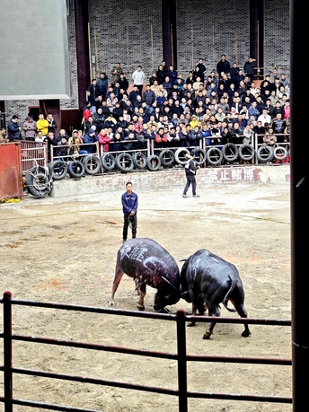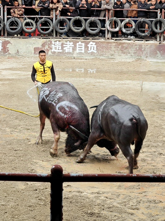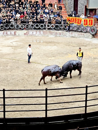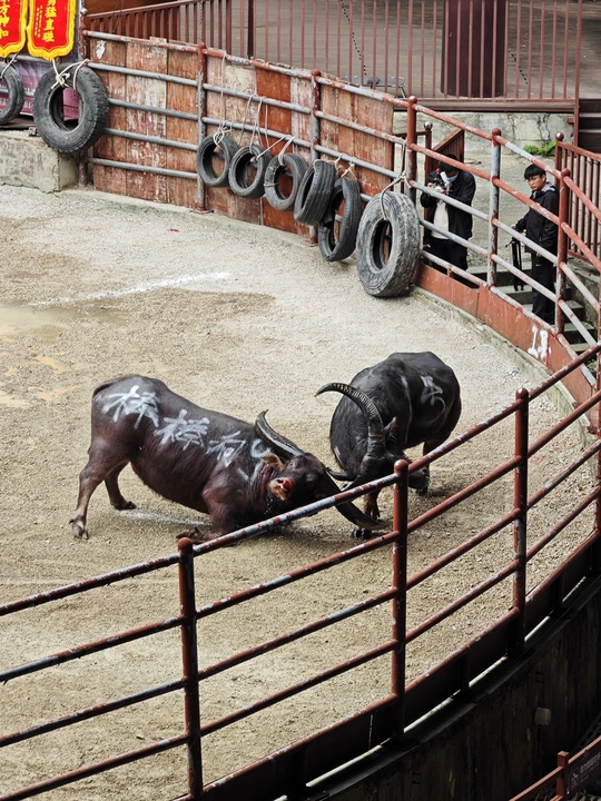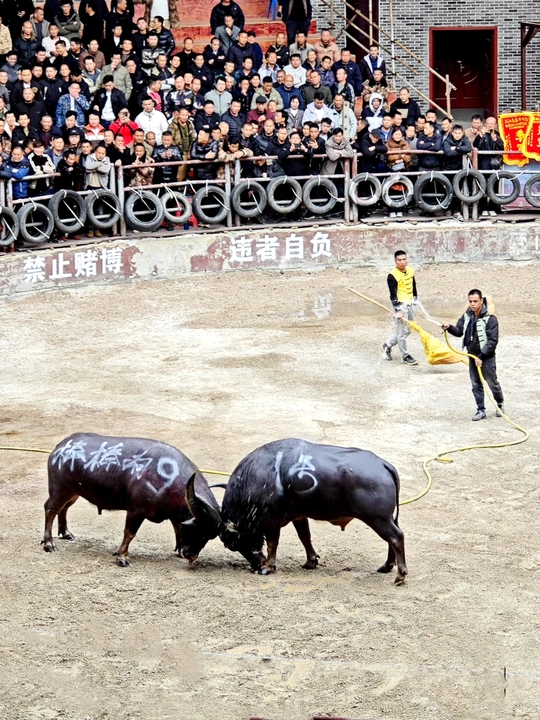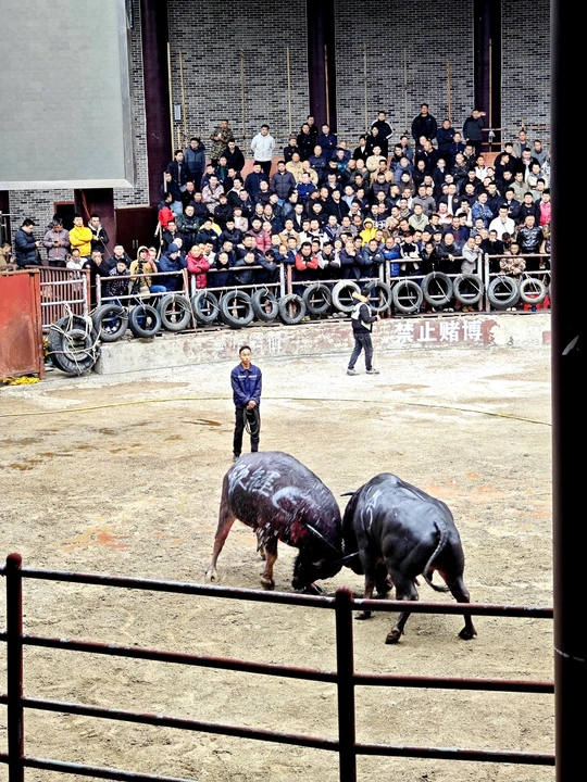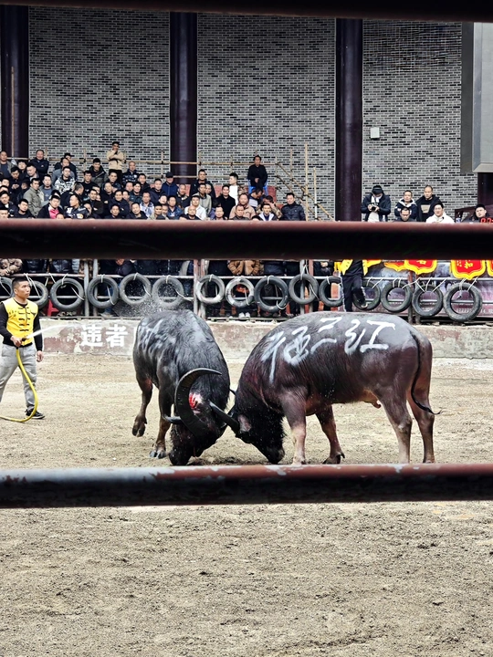 三月三,来到广西柳州三江,有幸见证了一场震撼人心的侗族文化斗牛盛宴!随着一声令下,斗牛正式开始!两头公牛如同离弦之箭,冲向对方,牛角相交的瞬间,发出“嘭”的一声巨响,仿佛整个大地都为之颤抖。它们互不相让,用尽全身力气推搡、顶撞,每一次碰撞都迸发出力量的火花,让人不禁为它们的勇猛所折服。