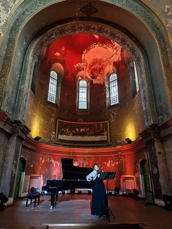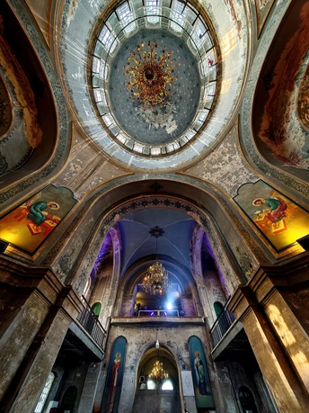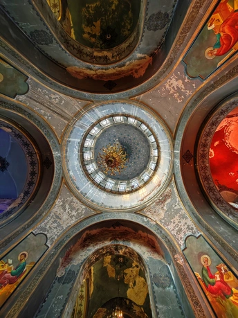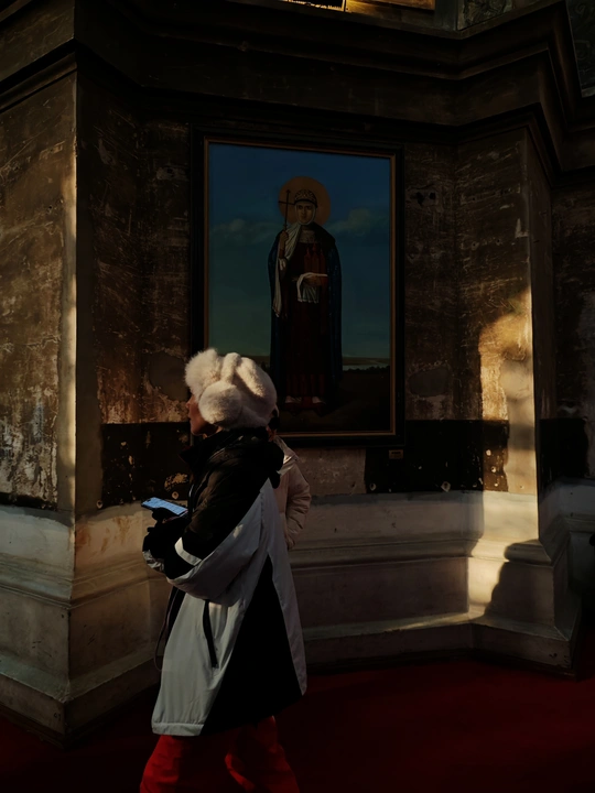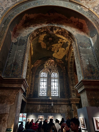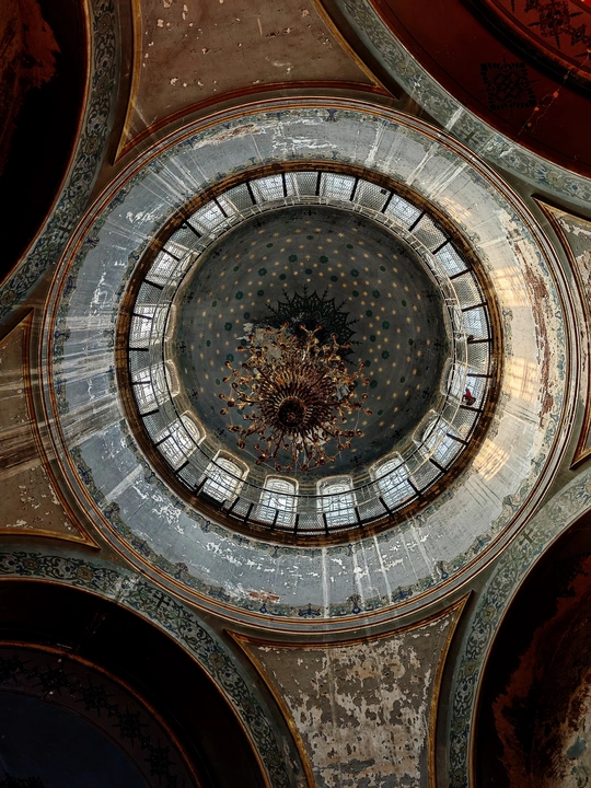 踏入圣·索菲亚教堂,一股陈旧气息扑面而来,却难以掩盖往昔的富丽堂皇。教堂内部空间开阔,高大的穹顶之上,壁画虽有褪色,但其细腻笔触与繁复色彩,仍可让人想象出当年绘制时的精美与神圣,人物栩栩如生,讲述着古老的宗教故事。 教堂的彩色玻璃窗透进斑驳光线,在地面与墙壁上投下绚丽光影,原本的色彩在岁月侵蚀下略显黯淡,却增添了几分古朴韵味。巨大的石柱矗立在大厅两侧,支撑着整个建筑,柱身雕刻的花纹精致细腻,历经沧桑依旧清晰,诉说着曾经的辉煌。 四周墙壁上悬挂的宗教画像,画框已显斑驳,颜料也有剥落,可画中人物的神态依然庄严,目光仿佛穿透岁月注视着每一位来访者。 吊灯悬于半空,水晶不再璀璨,却依然保留着典雅造型,想象着曾经灯火辉煌时的景象,满是奢华与神圣。 教堂内部的每一处细节,都带着历史的厚重感,虽已陈旧,却散发着独特魅力 ,让人沉浸在往昔的富丽堂皇之中,感受岁月沉淀的韵味。