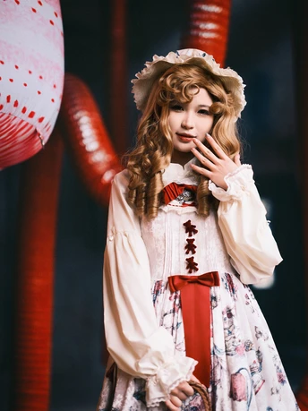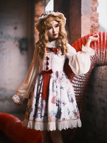 💮白月光裙摆杀疯啦!转身那刻直接美到缺氧~ 👒奶霜帽檐顶着手作绢花!风一吹卷卷金发像流动蜂蜜🍯,发丝尖尖还挂着细碎珠链✨ 🧱背景红窗格疯狂上分!砖墙裂纹和珍珠choker配一脸,暗戳戳混搭出破次元壁の魔幻感~ 💃🏻转圈时听到裙撑「沙沙」响!Lo长刚好露出蕾丝袜口,每一步都踩在童话节拍上👯♀️