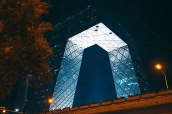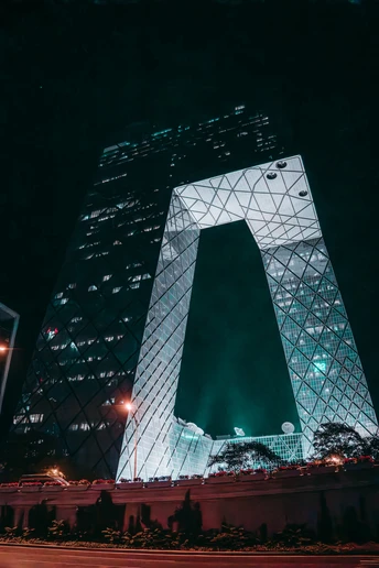 矗立于北京CBD核心的中央电视台总部大楼,以颠覆性的几何美学与工程奇迹重塑城市天际。由建筑大师雷姆·库哈斯与奥雷·舍人操刀设计,其标志性的“双塔悬臂”结构——两座双向倾斜6度的塔楼于163米高空以巨型L形悬臂相连,宛若“理性与浪漫的碰撞”。建筑外立面由精密计算的不规则菱形钢网构成,既化解力学压力,又以棱镜般的光影编织出未来主义的视觉交响
