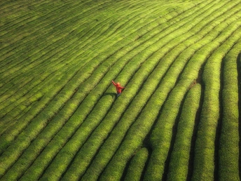 在安顺十二茅坡茶园,一排排的茶树像是大地的指纹,我站在茶树丛中,阳光倾泻而下,拍到了我的人生照片。