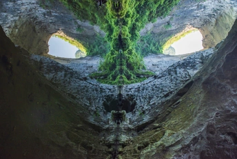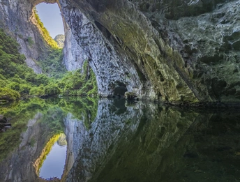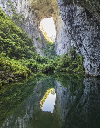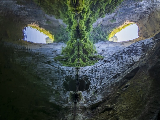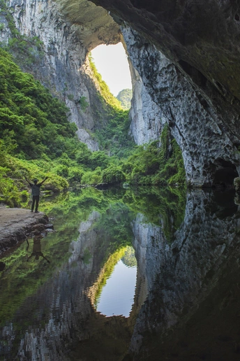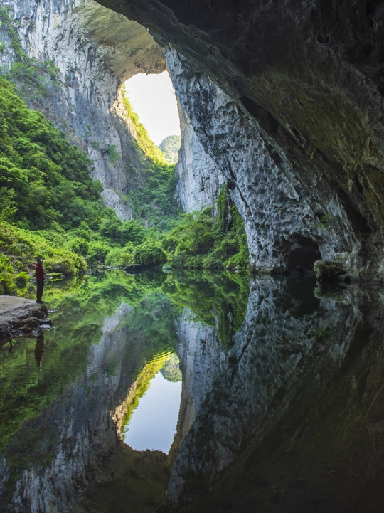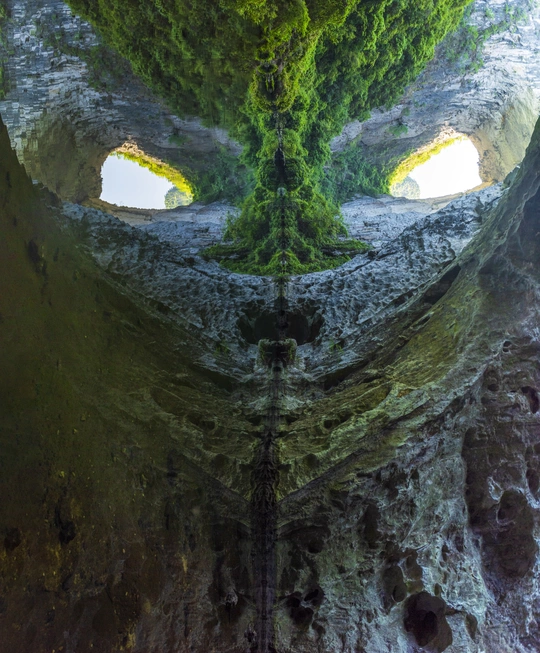在贵州安顺的大山深处,这处溶洞和它的倒影与黑神话悟空有几分相似,故誉为“大圣之眼”