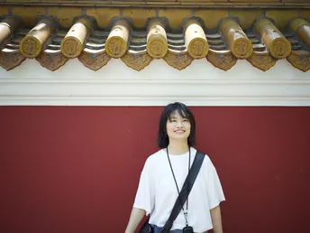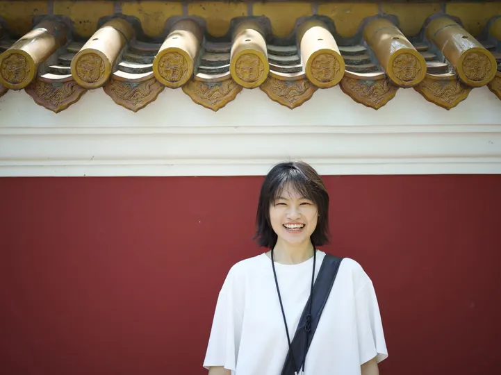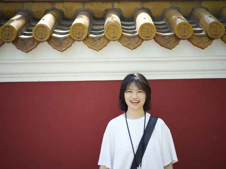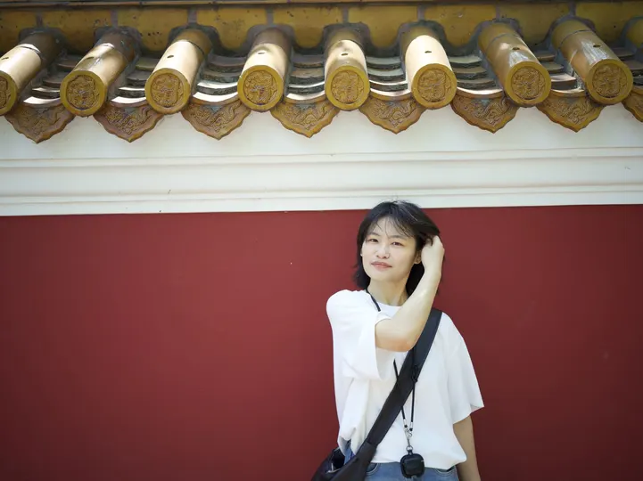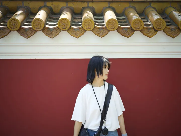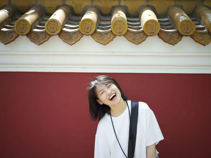 City walk路过一面红墙 我说,笑一笑,我拍两张照片 哈哈哈哈哈哈