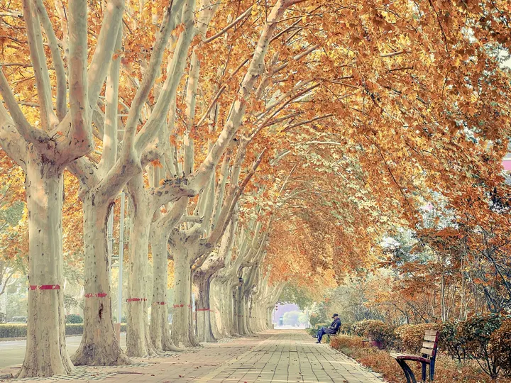 喜欢这种纵深的树荫密布 像走入了时光隧道 愿意一直走下去