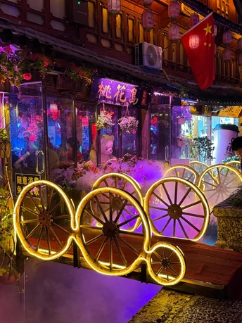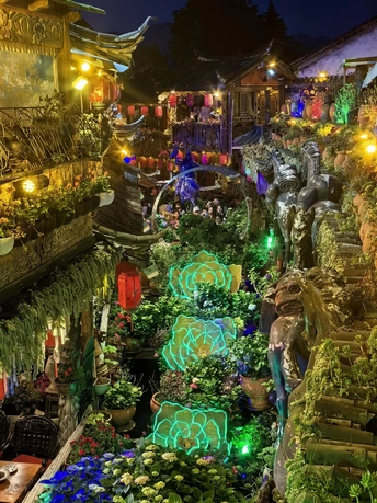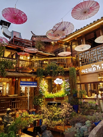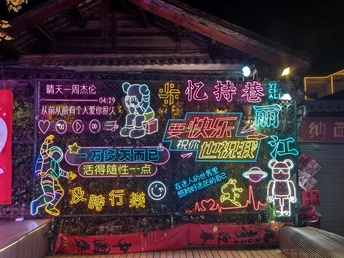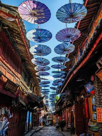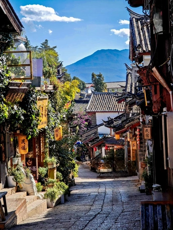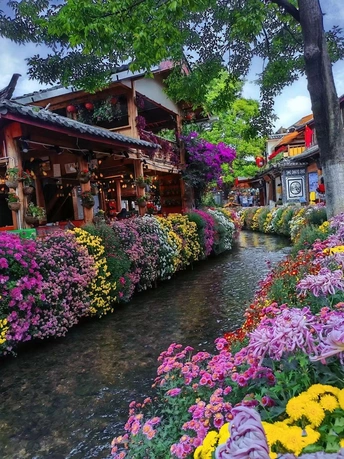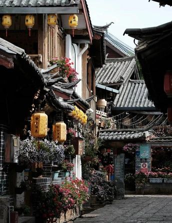 踏入丽江古城,时光仿若慢了下来。建于宋末元初的它,枕于玉龙雪山脚下,已有八百多年历史,是岁月精心雕琢的瑰宝。 古城依水而建,玉河水系穿街绕巷,“家家流水、户户垂杨”,造就高原水乡的别致景观 。三眼井依地势而设,彰显着纳西族人民爱水、节水的传统智慧。四方街曾是茶马古道的重要枢纽,马蹄声虽已远去,却仍能从热闹的街巷中,遥想当年的繁盛。夜幕降临,四方街燃起篝火,纳西族男女老少载歌载舞,质朴的笑容和欢快的旋律,驱散了所有疲惫。 沿着蜿蜒的石板路前行,木府的庄重映入眼帘。这座仿紫禁城而建的府邸,不仅是建筑的奇观,更是纳西族文化传承的见证。“天雨流芳”牌坊上的四个字,承载着纳西人对知识的尊崇,延续着这座古城的文化脉络。丽江古城,它以包容之态,让各民族文化在此交融,编织出绚丽的民族文化织锦,等待每一位旅人前来探寻。