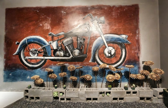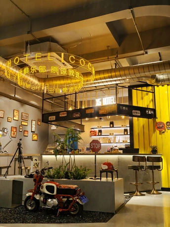坐落于番禺钟村的这家新晋工业风格酒店,以机车文化为核心,别具一格。酒店内的一楼区域被打造为一个独特的咖啡空间,装饰着工业风格的灯具和机车元素,并经常迎来车友们的聚会,气氛活跃。
