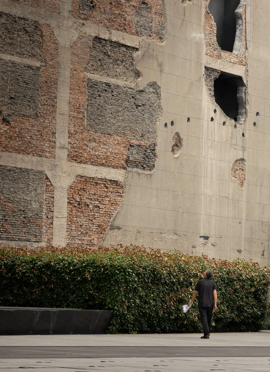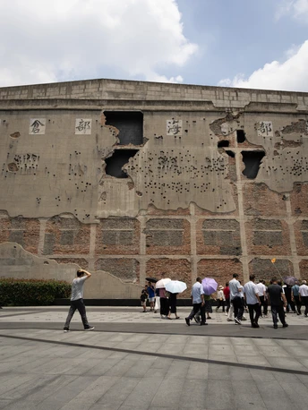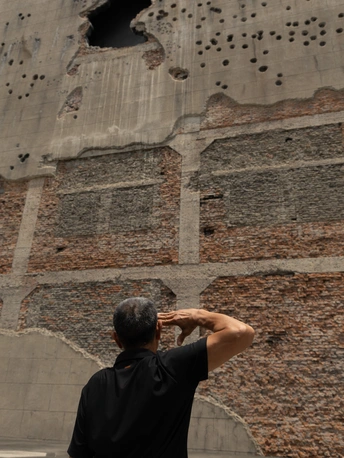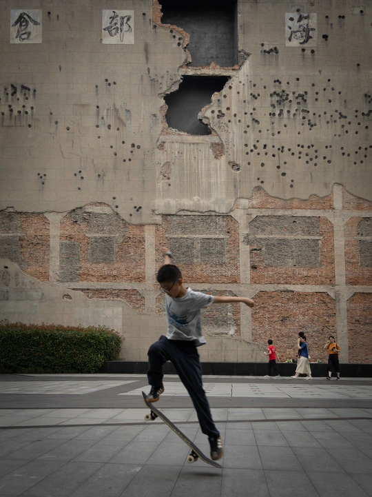 弹痕累累的四行仓库前,游客争相打卡。唯黑衣老伯肃立,向战痕墙注目敬礼,无声庄重。这面墙,既是历史的见证,又是现实的镜面。它映照着游客匆匆掠过的浮光掠影,更镌刻下了老伯那如山如磐的身影,一份超越喧嚣、流淌在血脉深处的静默缅怀。这份敬意,光芒内敛,却足以穿透一切浮华。如果非要说敬礼的手势有问题,那我觉得在真诚面前一切形式都是可以忽略不计