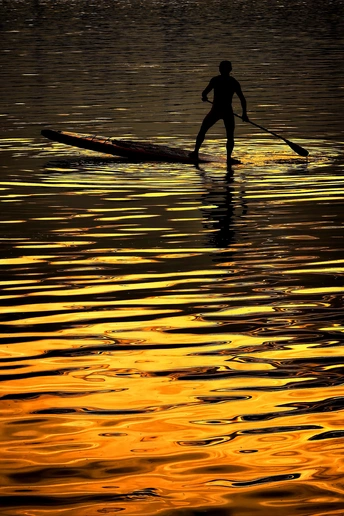 #祎璠纪实# #手机365-3151# 日暮时分,余晖洒在水面,泛起粼粼金波。皮划艇训练生一人一艇一桨,在金色涟漪里,一年四季执桨苦练,夕阳为笺,水波作墨,似与天地相融。