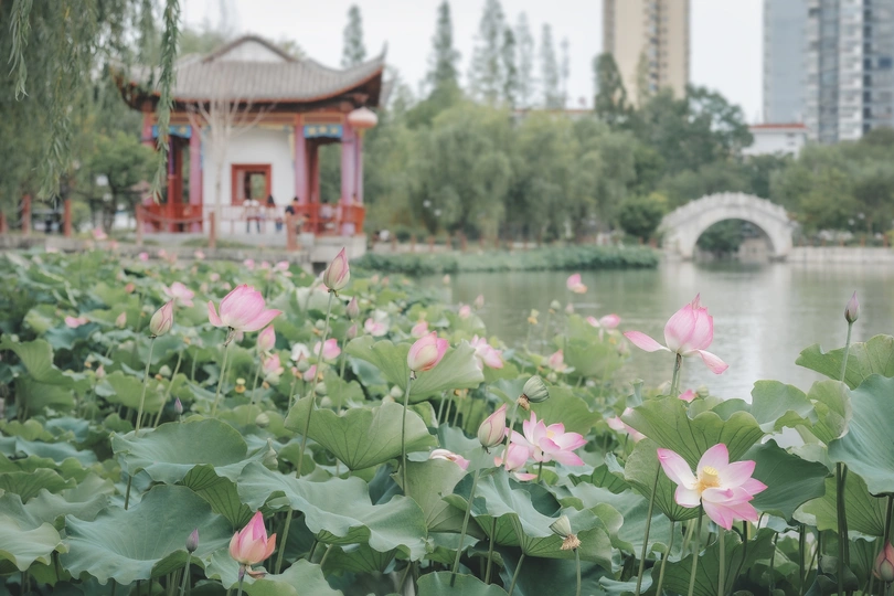 莲花池的荷花开了,给这个夏天添了一笔清新。