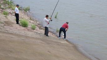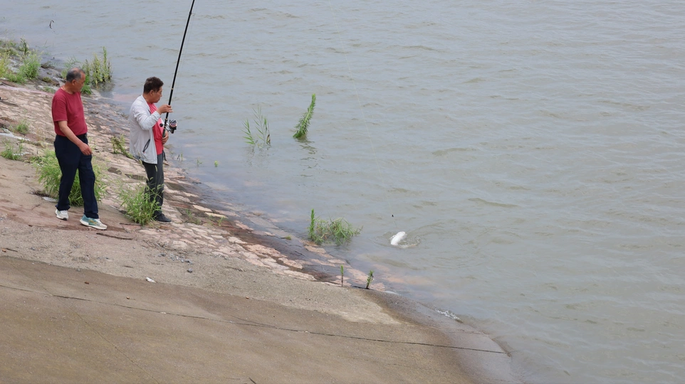 武昌江滩的晨光里,一竿一线牵起春日的欢愉。白衣钓者凝神观浮标,红衣客躬身收竿,银鳞跃水惊破倒影,搅碎满江琉璃色。水泥栈道载着三重期待,涟漪荡开处,都市喧嚣化作圈圈水纹。且看渔线轻颤的刹那,江风裹着收获的喜悦,将闲适时光细细编织进暮春的潮湿
